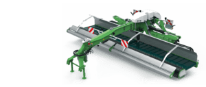 Elastyczny Przenośnik Taśmowy: Zintegrowany system taśm umożliwia transport skoszonego materiału w dowolnym, wybranym przez operatora kierunku, co pozwala na formowanie pokosu o dowolnej szerokości.